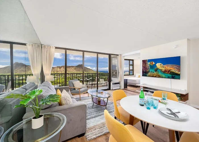 호놀룰루 Gorgeous Diamond Head Views From 34Fl With Free Parking 아파트는 로열 하와이언 센터에서 1.4km 떨어져 있습니다. 투숙객들은 1개 침실에 수용될 수 있습니다.